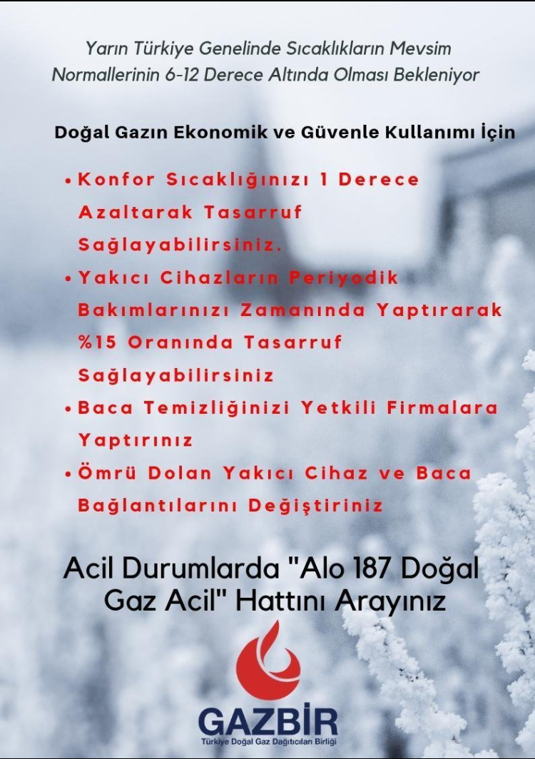 Doğalgaz Dağıtıcıları Birliği (GAZBİR), doğalgsz kullanımının artmaya başkadığı bu günlerde kobforlu doğalgaz kullanımı için abonelere önemli hatırlamar yaptı: