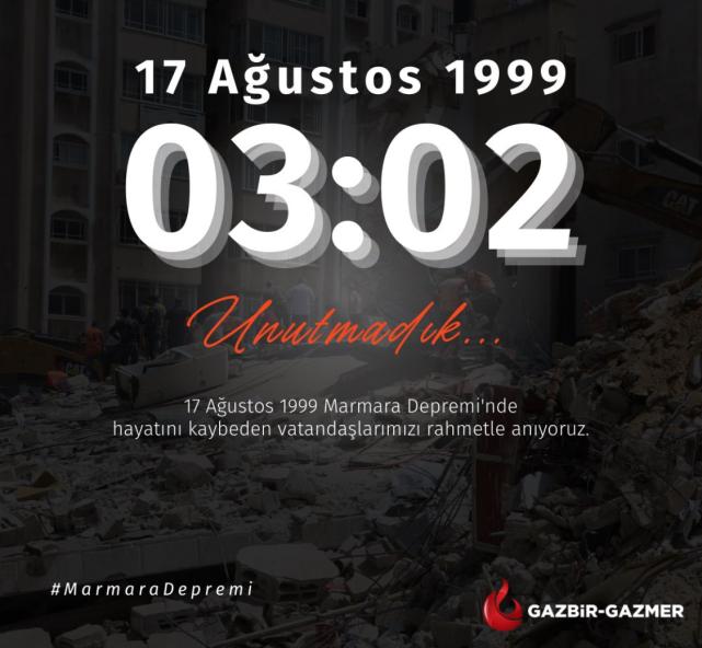 "17 Ağustos 1999 Marmara Depremi’nde hayatını kaybeden vatandaşlarımızı rahmetle anıyoruz."