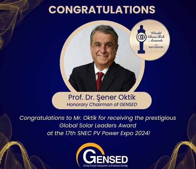 “GENSED olarak, 17. SNEC PV Power Expo 2024'te prestijli Küresel Güneş Liderleri Ödülü'nü alan değerli Yönetim Kurulu Üyemiz Sayın Şener Oktik'i tebrik ediyoruz. Güneş enerjisi endüstrisindeki vizyoner katkılarınız ve öncü çabalarınız gerçekten ilham verici”