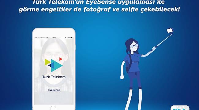 Türk Telekom’un yeni mobil uygulaması EyeSense ile görme engelliler Türkiye’de ilk defa sesli uyarı sistemi ile ile hem selfie hem de telefonun ön ve arka kamerasını kullanarak fotoğraf çekebilecekler.