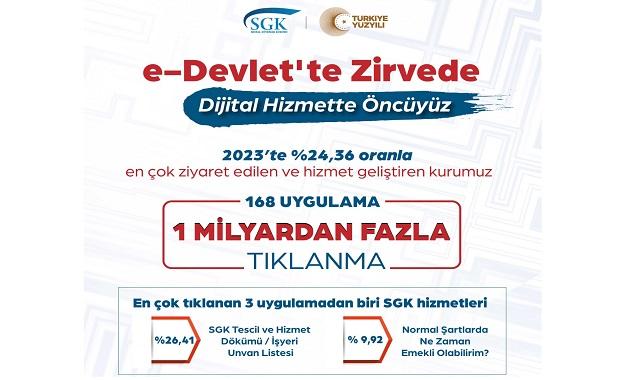 Çalışma hayatı ve SGK: Çalışma hayatının yoğunluğu ve karmaşıklığı, SGK'ya (Sosyal Sigortalar Kurulu) dijital rekor kırdırdı. SGK, sanal dünyada, 1 1milyarın üzerinde (1.000.000.000) tıklama aldı. SGK bu tıklanma rakamı ile e-devlet sisteminde dijital öncü oldu. SGK da en çok aranan-sorulan konu başlıkları ise: SGK tescil ve hizmet dökümü, İşyeri unvan listesi, normal şartlarda ne zaman emekli olabilirim?