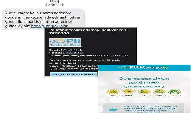 PTT AŞ, adının ve logosunun kullanılarak vatandaşların cep telefonlarına gönderilen sahte SMS ve e-postalarda zararlı linkler bulunduğunu, bu sayede banka ve kredi kartı ile kişisel bilgilerin ele geçirilmeye çalışıldığını tespit etti. Bu mesajlarda borcu olduğu belirtilen kişiden iletilen linke tıklaması, açılan ekranda T.C. kimlik numarasını ve araç plakasını yazması istenmektedir. Daha sonra sahte bir borç bakiyesi gösterilerek bu sözde borcun kredi kartıyla ödenmesi talep ediliyor. Borcun ödenmemesi durumundaysa kişilere cezai yaptırım uygulanacağı söyleniyor.