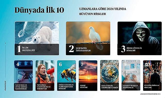 - Jeopolitik İstikrarsızlık ve Siber Güvenlik: İkinci ve üçüncü sıralarda yer alan bu riskler, modern dünyada istikrarı tehdit etmeye devam ediyor. Bu artışa sürmekte olan Orta Doğu krizi, Ukrayna’da devam eden ihtilaf ve dünya genelinde artış gösteren gerginlik, meydan okuma ve korumacılık atmosferinin katkıda bulunduğuna dikkat çekiliyor.
