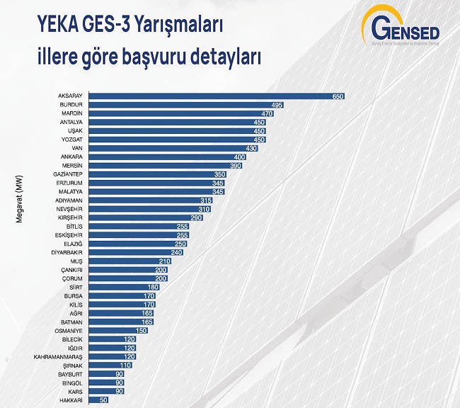 Güneş enerjisi sektörü temsilcisi kurulauşlardan GENSED (Güneş Enerjisi Sanayicileri ve Endüstrisi Derneği) YEKA GES-3 yarışması başvurularıyla ilgili önemli bir bilgi paylaşımı yaptı. GENSED'in bilgi paylaşımını aşağıda okuyabilirsiniz.
