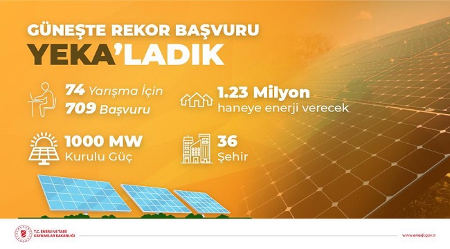 - Güneş enerjisi için yapılan yeni başvurular (YEKA GES - 3), 1 milyon 23 bin hanenin elektriğini güneşten sağlayacak.