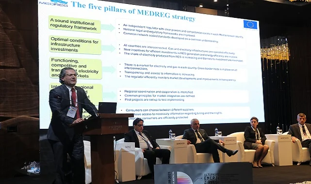 Akdeniz Enerji Düzenleyicileri Birliği (MEDREG) Özel Oturumu: Akdeniz Bölgesi’nde Enerji Dönüşümünde Düzenleyici Kurumların Rolü başlıklı oturumda MEDREG üyesi ülkelerin enerji piyasalarındaki son gelişmeler, düzenleyici kurumların enerji politikalarındaki rolü ve yenilenebilir enerji yatırımları konuşuldu. T.C Enerji Piyasası Denetleme Kurulu (EPDK) Başkanı Mustafa Yılmaz’ın açılış konuşmasıyla başlayan oturuma, MEDREG Başkan Yardımcısı ve Fas Düzenleme Kurulu Başkanı Abdellatif Bardach, MEDREG Direktörü Hasan Özkoç, MEDREG Kurumsal Çalışma Grubu Başkanı ve Ürdün Enerji Düzenleme Kurumu Elektrik ve Yenilenebilir Enerji Bölümü Direktörü Mohammad Maayah, Arnavutluk Enerji Düzenleme Kurumu Genel Sekreteri Elton B. Radheshi ve MEDREG Yenilenebilir Enerji Çalışma Grubu Başkan Yardımcısı, Lübnan Enerji Düzenleme Merkezi Teknik Danışmanı Sorina Mortada katıldı.