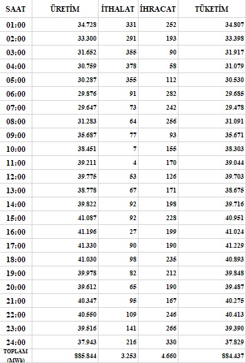 GÜNLÜK ELEKTRİK TÜKETİMİ 884.437 BİN KWH
