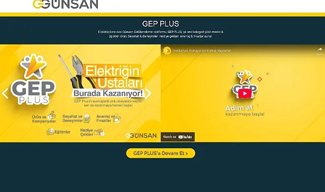 Sektörde bir ilk olma özelliği taşıyan ve 5 yıllık süreçte Türkiye’nin 81 ilinde 14 bin üyeye ulaşan online platform, üyelerine e-öğrenim modülleri aracılığıyla mesleki bilgilerini geliştirme fırsatı sunarken, güncel teknik bilgilere de kolayca erişim sağlanmasına destek oluyor. 30 ana kategoride, 900’ün üzerinde marka ve 25 binden fazla ürün seçeneğiyle elektrikçilere büyük fırsatlar sağlayan Günsan Ödüllendirme Platformu GEP PLUS, ürün ve kampanyalar, seyahat ve deneyimler, avantaj ve fırsatların yanı sıra, eğitim ve hediye çeki imkanları da sunuyor. Ayrıca platformda, distribütörlerin ve bayilerin sisteme dahil olması, kampanyalardan faydalanma imkanı, bayilere ve elektrikçilere hediye puan gönderebilmesi fırsatları da yer alıyor.