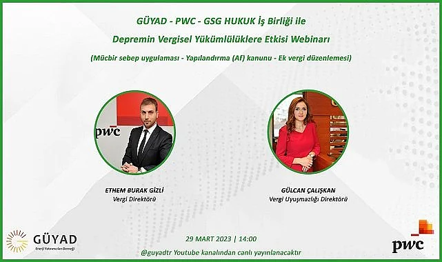 ''GÜYAD - PwC Türkiye - GSG Hukuk İş Birliği ile Depremin Vergisel Yükümlülüklere Etkisi Webinarı''- GÜYAD Youtube kanalı: youtube.com/@guyadtr