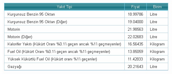 Kaynak: Enerji Piyasası Düzenleme Kurumu (EPDK) En Yüksek İşlem Hacimli 8 Akaryakıt Şirketi Ortalama Bayi Fiyatları.