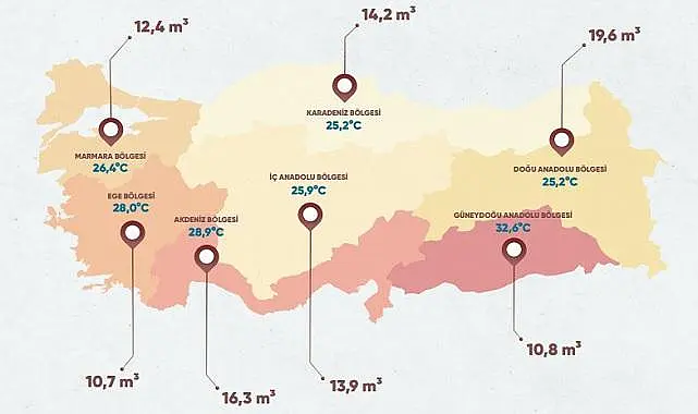 - (Türkiye'deki Coğrafi Bölgelerin 2023 Ağustos Ayı Ortalama Hane Başı Konut Tüketimleri ve Sıcaklık Karşılaştırması)