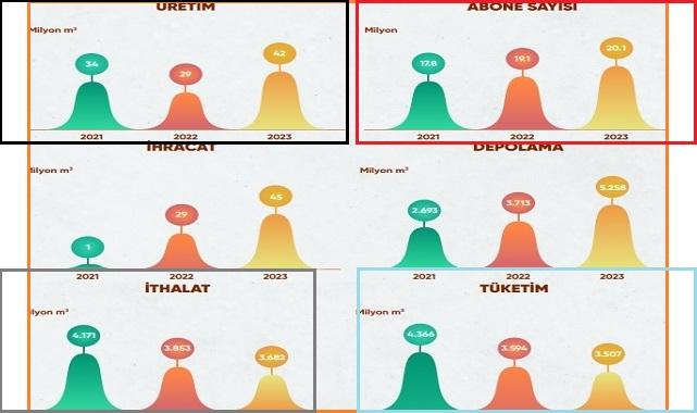 - Doğal gaz abone sayısı - Ddoğal gaz tüketimi - Doğal gaz ithalatı - Doğal gaz üretimi!