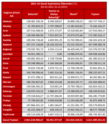 Elektrik dağıtım şirketlerine yapılan aydınlatma ödemeleri!