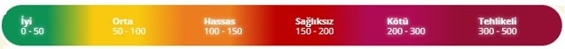 Tehlikeli hava (300 - 500): Herkes, ciddi sağlık etkileri yaşayabilir. Açık hava etkinliklerinden kaçınılmalıdır.