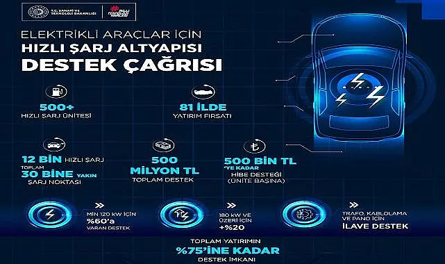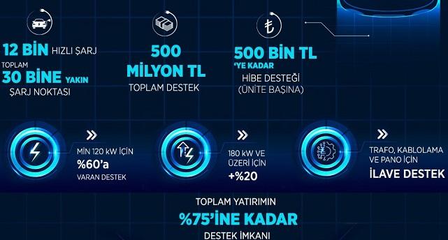 ''Elektrikli Araçlar için Hızlı Şarj Altyapısı Destek Programı ile Türkiye’nin her şehrinde hızlı şarj istasyonları kurulmasını destekliyoruz.''