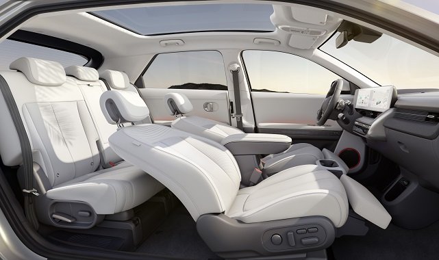 IONIQ 5, ikinci sıra koltuklar tamamen katlandığında yaklaşık 1.587 litreye kadar bir yükleme alanı sunuyor. Koltuklar tam dik konumdayken 527 litre bagaj alanı sağlayarak günlük kullanımda oldukça ideal bir yükleme kapasitesi sunmuş oluyor. Daha fazla alan için ikinci sıra koltuklar 135 mm'ye kadar öne doğru kayabiliyor ve ayrıca 6:4 oranında katlanabiliyor. Rahatlama pozisyonlu ön koltuklar tamamen elektrikli olarak sunuluyor. Böylece her iki ön koltuk düz bir konuma gelerek şarj esnasında araç içindekilere dinlenme olanağı sağlıyor.