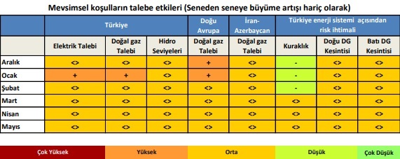 Enerji - İklim Raporu'nun mevsimsel koşulların gelecek 6 aylık dönem için talebe etkilerini aşağıdaki tablo üzerinden inceleyebilirsiniz.