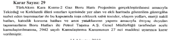 Tekirdağ ve Kırklareli’nde TürkAkım 2 doğalgaz boru hattı için Acele Kamulaştırma yapılacak.