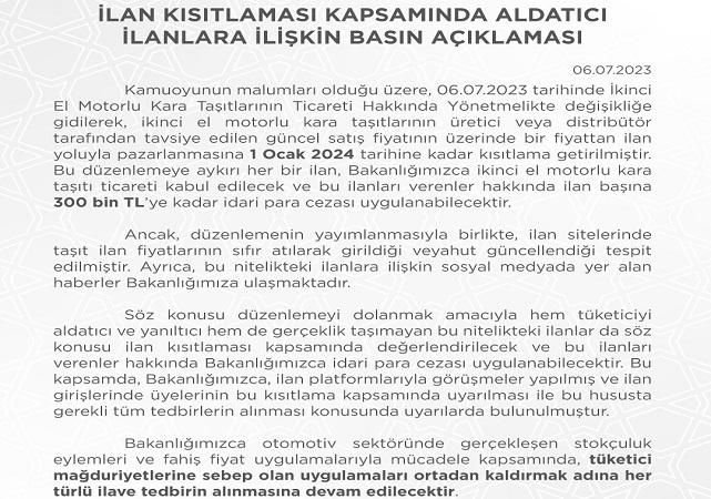 - İlan Kısıtlaması Kapsamında Aldatıcı İlanlara İlişkinAçıklama