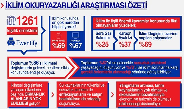 “İklim konusunda nereden bilgi alıyorsunuz” sorusuna ağırlıklı olarak ise “televizyondan” ve “sosyal medyadan” yanıtı verildiği de dikkat çekti.