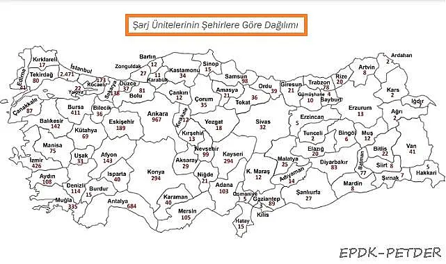 Türkiye'deki şarj istasyonlarının sayısı ve illere göre dağılımı!- EPDK-PETDER (Eylül 2023 sonu itibariyle).