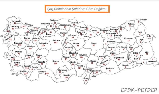 Türkiye'deki şarj istasyonlarının sayısı ve illere göre dağılımı!- EPDK-PETDER (Eylül 2023 sonu itibariyle).