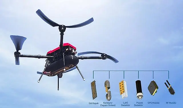 İHA’dan bağımsız olarak da kullanılabilen ve yaklaşık 5 kg ağırlığında olan modüler yapıdaki radyasyon izleme sistemi iki farklı dedektör barındırmaktadır. İlk dedektör yaklaşık 11 cm x 5,5 cm x 35 cm (2.117,5 cm3) boyutlarında 2,5 kg ağırlığında olan plastik sintilasyon dedektörü ve fotoçoğaltıcı tüpten (PMT) oluşmaktadır. İkinci dedektör ise 10 adet, 1 cm çapında ve 4 mm kalınlığındaki yeni nesil LaYO seramik sintilatörlü fotodiyot tabanlı bir dedektördür.