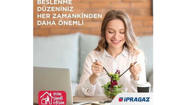 İPRAGAZ: 'Ofisten uzak evinizin rahatlığında çalışıyor olmak beslenme alışkanlıklarınızı kötü etkileyebilir. Evde çalıştığınız süre boyunca daha fazla yemek yeme ihtiyacı hissedebilirsiniz.Yanlış bir beslenme size hem enerji düşüklüğü hem de kötü bir ruh hali olarak geri dönebilir. Bu sebeple yemek saatlerinizi ofiste yemek yediğiniz saatlerle eşleştirebilir ve atıştırmalıklar konusunda daha sağlıklı seçeneklere yönelebilirsiniz.'