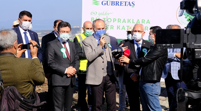 GÜBRETAŞ Hatıra Ormanı fidan dikim töreninde konuşan Genel Müdür İbrahim Yumaklı, Adnan Menderes döneminde kurulan GÜBRETAŞ’ın bu topraklara atılan ilk tohum olarak İskenderun’daki fabrikasıyla üretime başladığını hatırlatarak geride kalan 69 yılda şirketin yatırımlarıyla ülke genelinde kök salıp büyüyerek kocaman bir ağaca dönüştüğünü belirtti. Genel Müdür Yumaklı, “Türkiye’nin en büyük çiftçi ailesi Tarım Kredi’nin şirketi olan GÜBRETAŞ ağacı; bugün gelinen nokta itibariyle Türkiye genelinde 2 ildeki üretim tesisleri, 4 laboratuvarı, 5 lojistik merkezi, 8 bölge müdürlüğü ve 2750 civarındaki satış noktasıyla ülkenin dört bir yanına dallarını uzatıp meyve vermeye devam etmektedir. Öyle ki ilk olarak İskenderun’a dikilen bu ağacın dalları, son yıllarda gerçekleştirdiği yurtdışı yatırımlar ve yaptığı ihracatla dünyaya da uzanmış durumdadır” dedi.