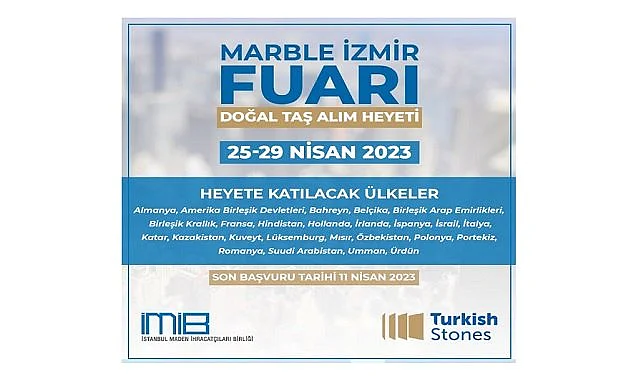 İMİB (İstanbul Maden İhracatçıları Birliği)... ''Sektör temsilcilerimizi yabancı satın almacı firmalar ile bir araya getirmeye devam ediyoruz. Bu kapsamda 25-29 Nisan’da "Türk Doğal Taşları Marble İzmir Fuarı Doğal Taş Alım Heyeti" etkinliği düzenliyoruz.