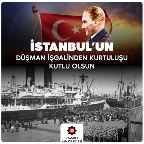 Bugün, 6 Ekim. İstanbul'un düşman işgalinden kurtuluşunun 96'ncı yılı. İstanbul Sanayi Odası (İSO), İstanbul'un düşman işgalinden kurtuluşunun 96'ncı yıl dönümü nedeniyle bir kutlama mesajı yayınladı. İSO'nun İstanbul'un düşman işgalinden kurtuluşunun 96'ncı yıl dönümü kutlama mesajı şöyle: İstanbul'un düşman işgalinden kurtuluşunun 96'ncı yılı kutlu olsun.