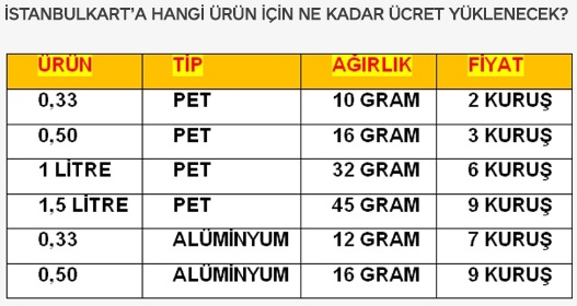 İstanbul Büyükşehir Belediyesi (İBB) şirketlerinden İSBAK'ın çevre kirliliğini önlemek için geliştirdiği Akıllı geri dönüşüm konteynerları çalışmaya başladı. Herkes için kazanç kapısı olabilecek proje kapsamında konteynerlar metrolara yerleştirilmeye başlandı. Proje kapsamında dönüşüm konteynarlarının öncelikle metro ve okulların olduğu yerlere konacağı açıklanmıştı. Herkes konteynerlara atacağı pet şişe ve aluminyum ağırlığına göre ücret alacak. Ücretler İstanbulkart'lara kredi şeklinde yüklenecek.