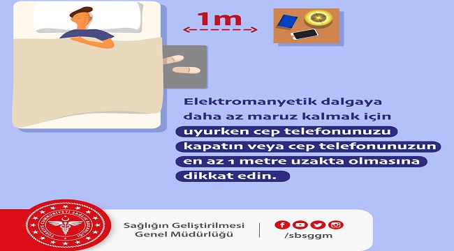 'Elektromanyetik dalgaya daha az maruz kalmak için uyurken cep telefonunuzu kapatın veya cep telefonunuzun en az 1 metre uzakta olmasına dikkat edin.'