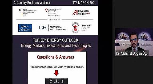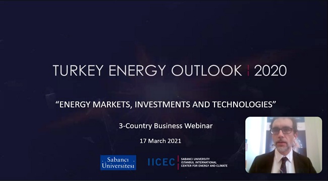 Webinarın açılış konuşmalarını İsviçre Büyükelçiliği Ekonomi ve Kültür İşleri Bölüm Başkanı, Müsteşar Ariane Tinner ve Sabancı Üniversitesi IICEC Koordinatörü Dr. Mehmet Doğan Üçok yaptı. Webinarda, Sabancı Üniversitesi IICEC Direktörü Bora Şekip Güray da IICEC’in Türkiye’de bir ilk ve gelişmekte olan ülkeler arasında alanında örnek olan Türkiye Enerji Görünümü (Turkey Energy Outlook) isimli çalışmasından enerji piyasaları, yatırımlar ve teknolojilere ilişkin değerlendirmeleri paylaştı.