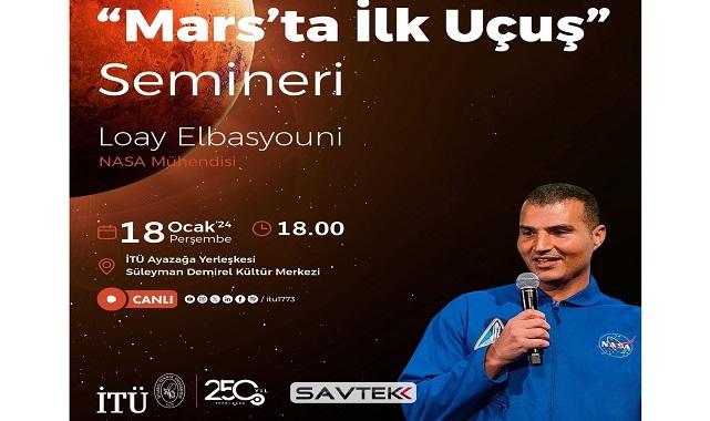İTÜ (İstanbul Teknik Üniversitesi) konuyla ilgili "Mars'ta İlk Uçuş" semineri, NASA mühendisi Loay Elbasyouni’nin katılımıyla üniversitemizde gerçekleşecek'' başlıklı bilgi paylaşımı yaptı.