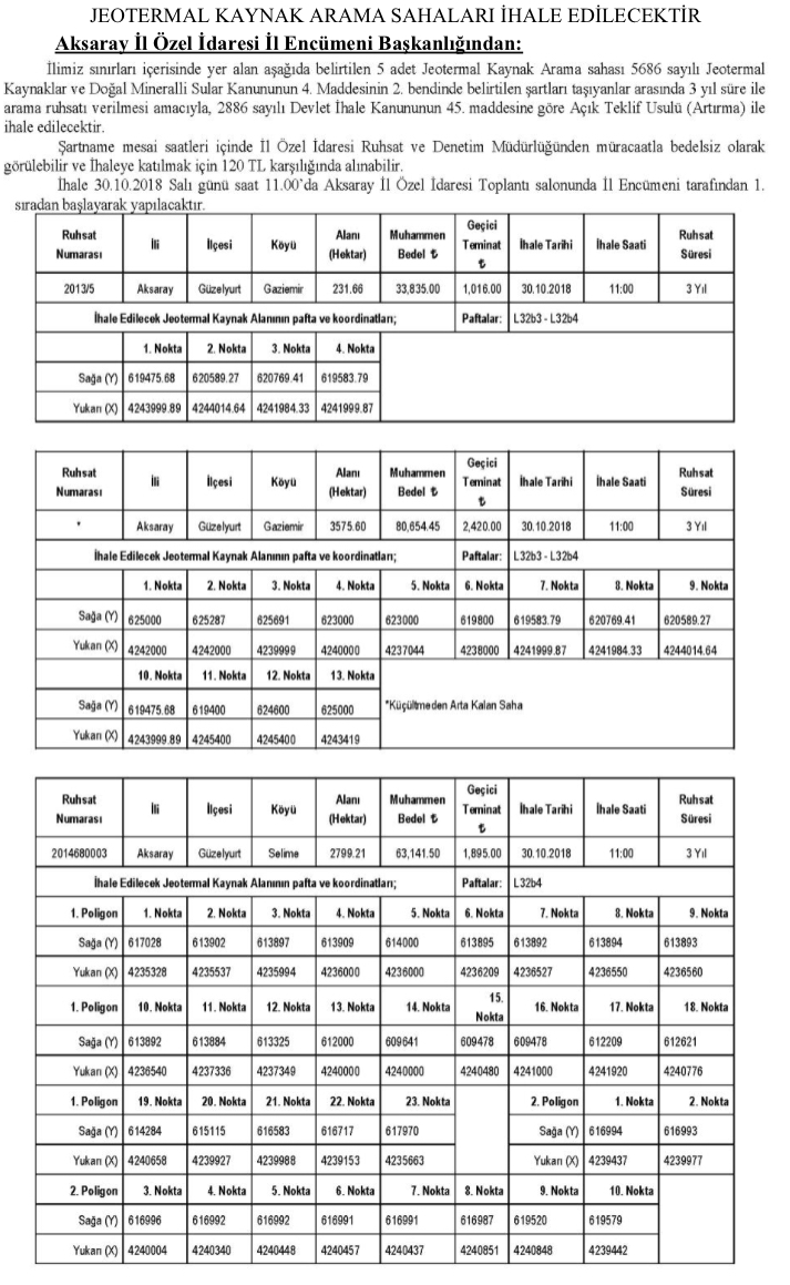 İhaleyle ilgili duyuru Resmi Gazetede yayınlandı.