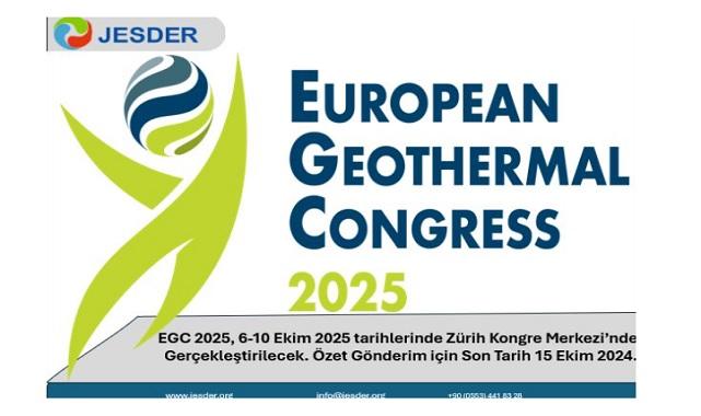 ''Avrupa Jeotermal Kongresi (EGC 2025), 6-10 Ekim 2025 tarihlerinde Zürih Kongre Merkezi'nde gerçekleştirilecek. Bildiri özetleri için son gönderim tarihi 15 Ekim 2024 olarak belirlenmiştir. Bildiri gönderim koşulları, program ve detaylı bilgi için ilgili sayfayı ziyaret edebilirsiniz.''