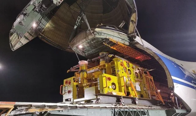 - 'Tarihimizin en büyük gaz keşfinde kullanılacak dev kuyubaşı vanalarından ilki Filyos’a geldi.'- '65 ton ağırlık, 5.1 metre yükseklik, 5.9 metre genişlik.'