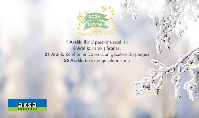 Aksa DoğalGaz 'Kocaman bir yılın sonuna geldiniz.” diyen güzel Aralık hoş geldin' başlığıyla, Aralık ayı Doğa Takvimini paylaştır.