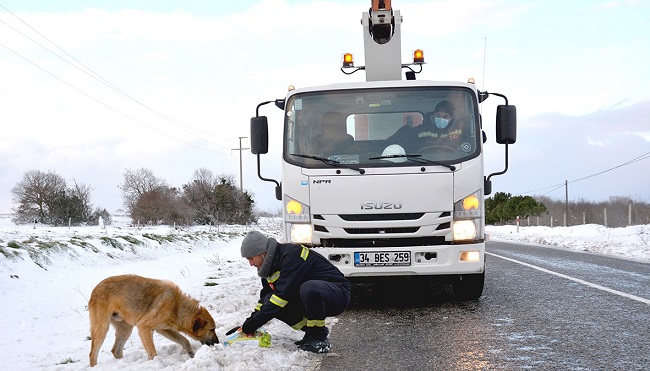 Enerji Ekonomisi - 14 Şubat Pazar gününden beri İstanbul’u etkisi altına yoğun kar yağışı nedeniyle oluşabilecek arızalara karşı alarmda olan BEDAŞ ekipleri, sokak hayvanlarını da unutmuyor. Ekipler arıza ve onarım çalışmalarına giderken kar nedeniyle yiyecek bulmakta zorlanan sokak hayvanları için yanlarında mama da taşıyor.