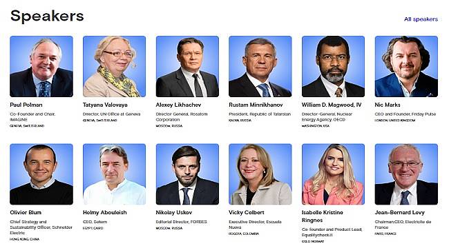 Konferansa, OECD NEA Genel Müdürü William Magwood IV, Birleşmiş Milletler Cenevre Ofisi Direktörü Tatiana Valovaya, Tataristan Cumhurbaşkanı Rustam Minnikhanov, Électricité de France Başkanı ve Genel Müdürü Jean-Bernard Levy ile Rosatom Genel Müdürü Alexei Likhachev ile, diğer önde gelen sürdürülebilirlik ve kurumsal yönetim uzmanları katılacak.