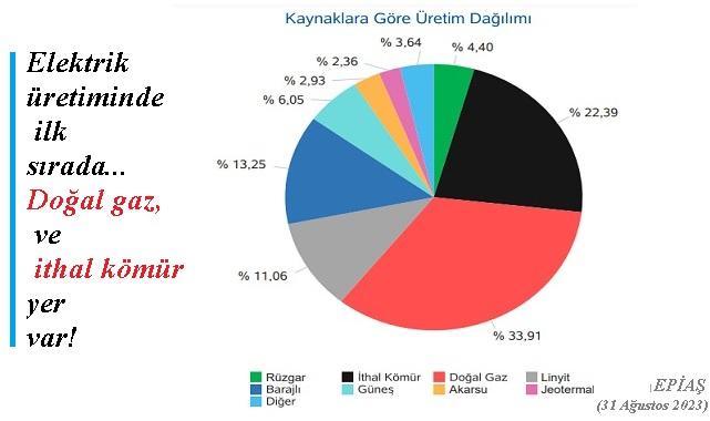 Enerji Piyasaları İşletme Anonim Şirketi (EPİAŞ) verilerine göre, doğal gaz ve ithal kömürle elektrik üretimi yüzde 50'yi geçti 831 ağustos, günlük üretim).