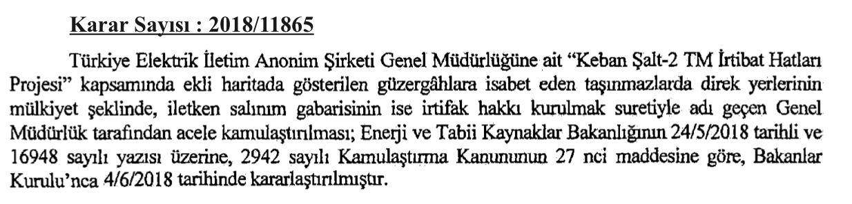 Keban Baraji için Acele Kamulaştırma yapılacak. Türkiye Elektrik İletim AŞ (TEİAŞ)’ın kararı konunedinen Bakanlar Kurulu Kararı Resmi Gazetede yayınlandı.