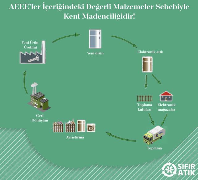 Sıfır Atık Türkiye bilgi paylaşımı şöyle: "Atık elektrikli ve elektronik eşyalar (AEEE), içeriğindeki değerli malzemeler sebebiyle geri dönüşüm için oldukça önemlidir. E-Atıkların parçalanması, yakılması ya da doğrudan toprağa gömülmesi içindeki tehlikeli maddelerin açığa çıkması sebebiyle insan sağlığına büyük zararlar vermektedir."
