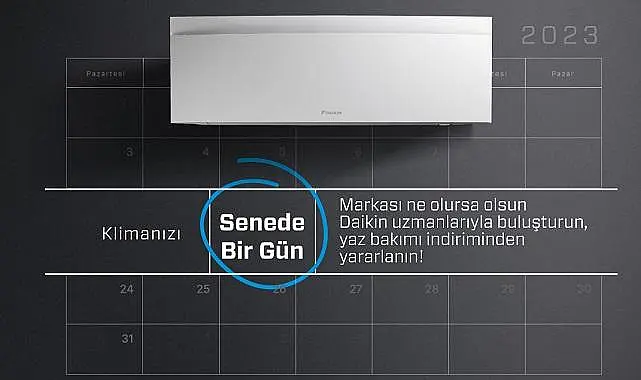 Doğru hava uzmanı Daikin ürün ve hizmetleriyle iklimlendirme sektörüne öncülük etmeye devam ediyor. Klima sahiplerinin cihazlarını uzun yıllar boyunca verimli, güvenli ve konforlu bir şekilde kullanabilmelerine önem veren Daikin, bu amaçla 5 Nisan - 15 Haziran 2023 tarihleri arasında geçerli olacak ‘klima bakım kampanyası’ ile cihazlarınızı yaz mevsimine hazırlıyor. ‘Senede Bir Gün’ mottosuyla hayata geçen ve 380 TL fiyattan başlayan bakım kampanyası, markası ne olursa olsun, tüm ticari ve ev tipi klimaları kapsıyor. Ev veya ofislerdeki klimaların yılda en az 1 kez bakımının yapılması cihazların performansı ve enerji tasarrufu açısından büyük önem taşıdığını belirten Daikin uzmanları, bakımların yetkili servislerce yapılmasının önemine dikkat çekiyor.