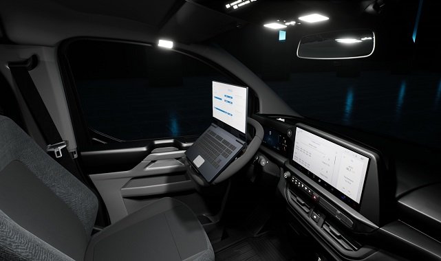 Küçük işletmeler ticari araçlarının kabinlerini sık sık ofis olarak veya molalarda yemek için kullanır. İnsan odaklı tasarım laboratuvarı D-Ford tarafından yaratılan derin müşteri etkileşimi sayesinde E-Transit Custom her iki amaca her zamankinden daha iyi hizmet ediyor. İsteğe bağlı Mobil Ofis paketinde yenilikçi, eğilebilir bir direksiyon öne çıkıyor. Tabletler ve dizüstü bilgisayarlar için ergonomik bir stant ya da rahatça yazı yazmak ve öğle yemeği molalarında kullanmak için düz bir masaya dönüşebiliyor. Pakette ayrıca daha parlak LED kabin aydınlatması ile belgeler ve cihazlar için güvenli bir saklama alanı da bulunuyor.