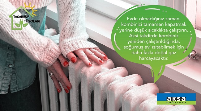 'Evde olmadığınız zaman, kombinizi tamamen kapatmak yerine düşük sıcaklıkta çalıştırın. Aksi takdirde; kombiniz yeniden çalıştırıldığında, soğumuş evi ısıtabilmek için daha fazla doğal gaz harcayacaktır.'