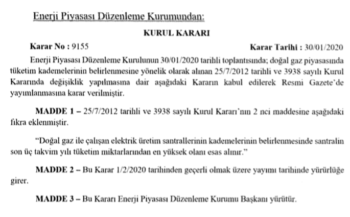 Enerji Piyasası Düzenleme Kurumu (EPDK), doğal gazla çalışan elektrik santralleri için yeni bir Kurul Kararı yayınladı. EPDK Kurul Kararı ayrıntılarını aşağıda okuyabilirsiniz.