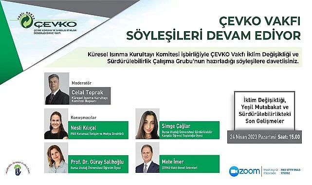 ÇEVKO bilgi paylaşımı yaptı... Küresel Isınma Kurultayı Komitesi işbirliğiyle, ÇEVKO Vakfı İklim Değişikliği ve Sürdürülebilirlik Çalışma Grubu'nun hazırladığı söyleşimiz 24 Nisan Pazartesi saat 15.00'de yapılacak "İklim Değişikliği, Yeşil Mutabakat ve Sürdürülebilirlikteki Son Gelişmeler" başlığını taşıyan söyleşi düzenliyor.