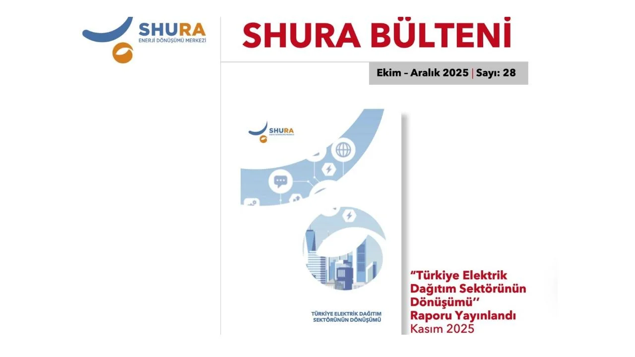 SHURA: ''SHURA Enerji Dönüşümü Merkezi’nin Ekim – Aralık 2025 dönemine ait 28. bülteni yayınlandı. Bu sayıda, Kasım ayında yayınlanan “Türkiye Elektrik Dağıtım Sektörünün Dönüşümü'' raporu, SHURASTAT’ın 45. sayısı, “SHURA GÜNDEM”in yeni içerikleri, “Enerji Dönüşümü Gündemi” programının son bölümleri, SHURA’nın katıldığı etkinlik ve programlar ile hazırlık aşamasındaki çalışmalar ve yayımlanan haberler yer alıyor.''